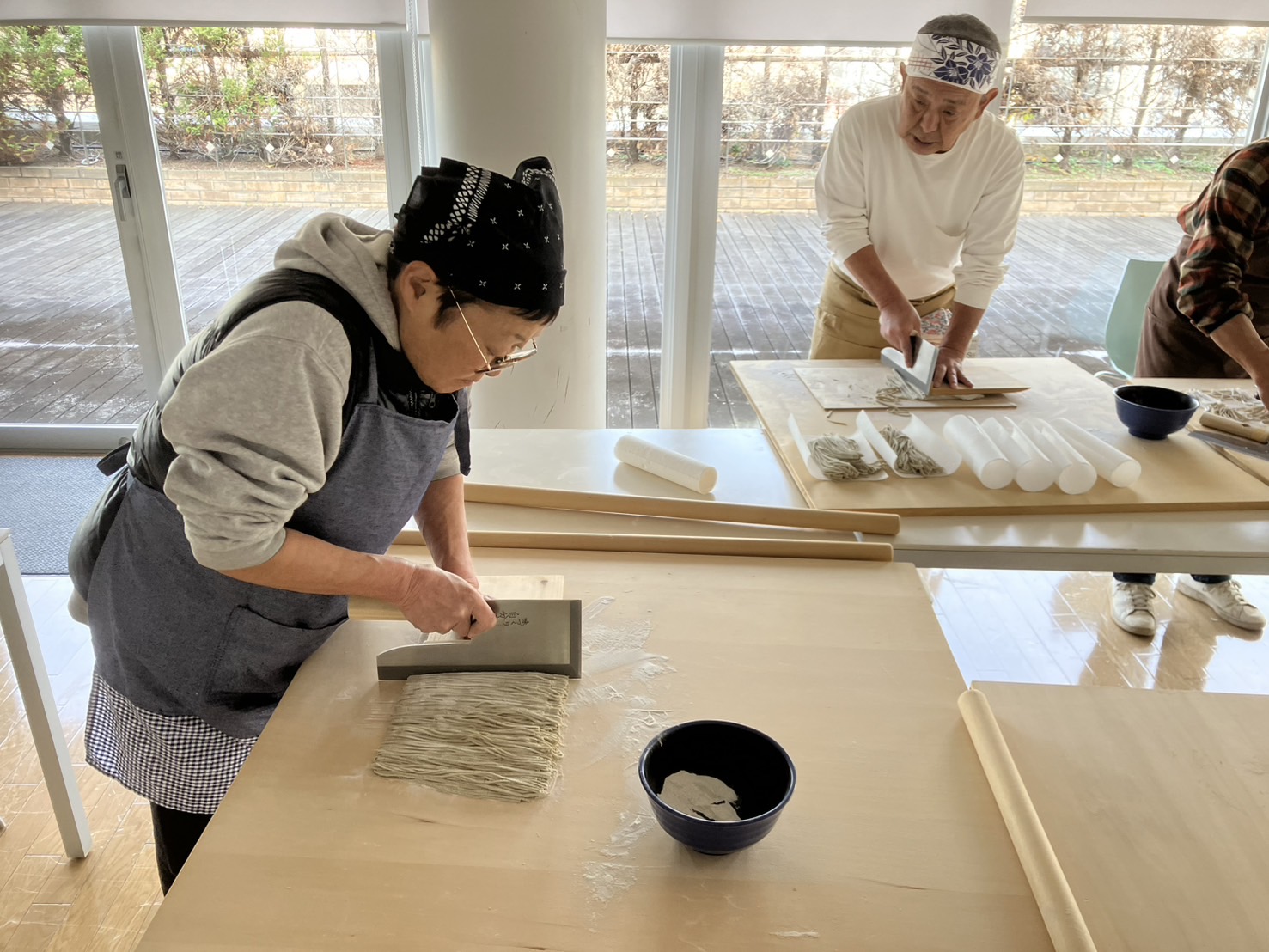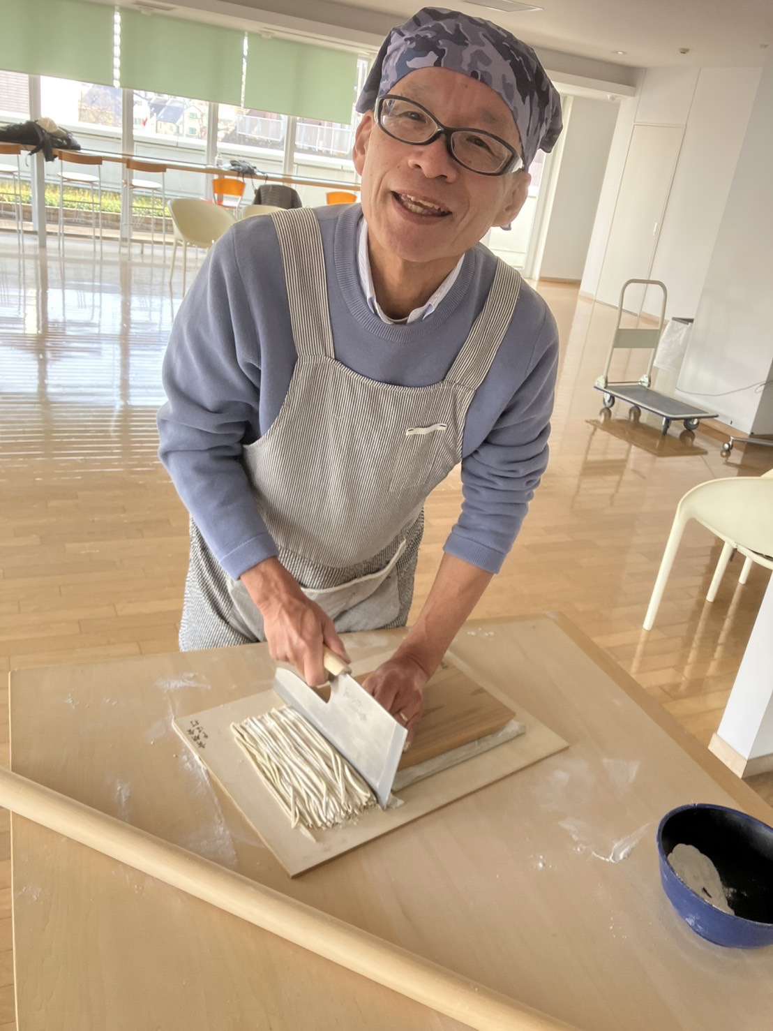 12月20日(金) Mスクエアにて今年最後の蕎麦打ちが行われました。体調不良の欠席が2名ありましたが総勢6名で今年の新蕎麦(美味しいと評判の北海道産)で蕎麦打ち。