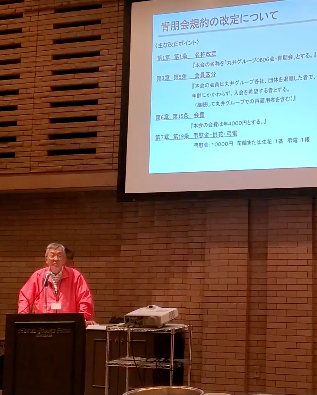 皆様へのお知らせとして、今回は規約の改訂があります。詳細はパンフレットに記載をしていますが、年会費の値上げがございます。1993年以来33年振りとなります。何卒ご理解を賜りますようよろしくお願いします。