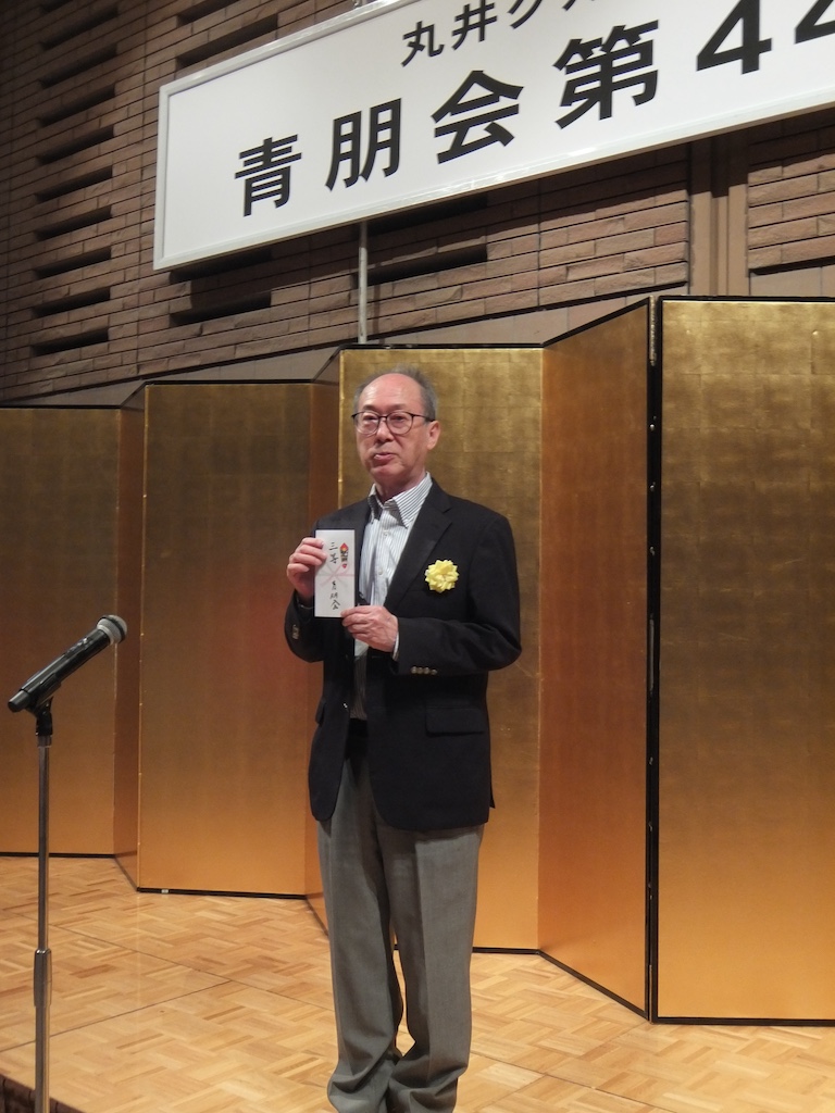 青朋会は1983年に発足し、現在会員は720名、平均年齢は78歳です。今回長寿のお祝いにご出席されているのは米寿の方が5名、喜寿の方が21名いらっしゃいます。また新会員の方は3名がご出席されています。