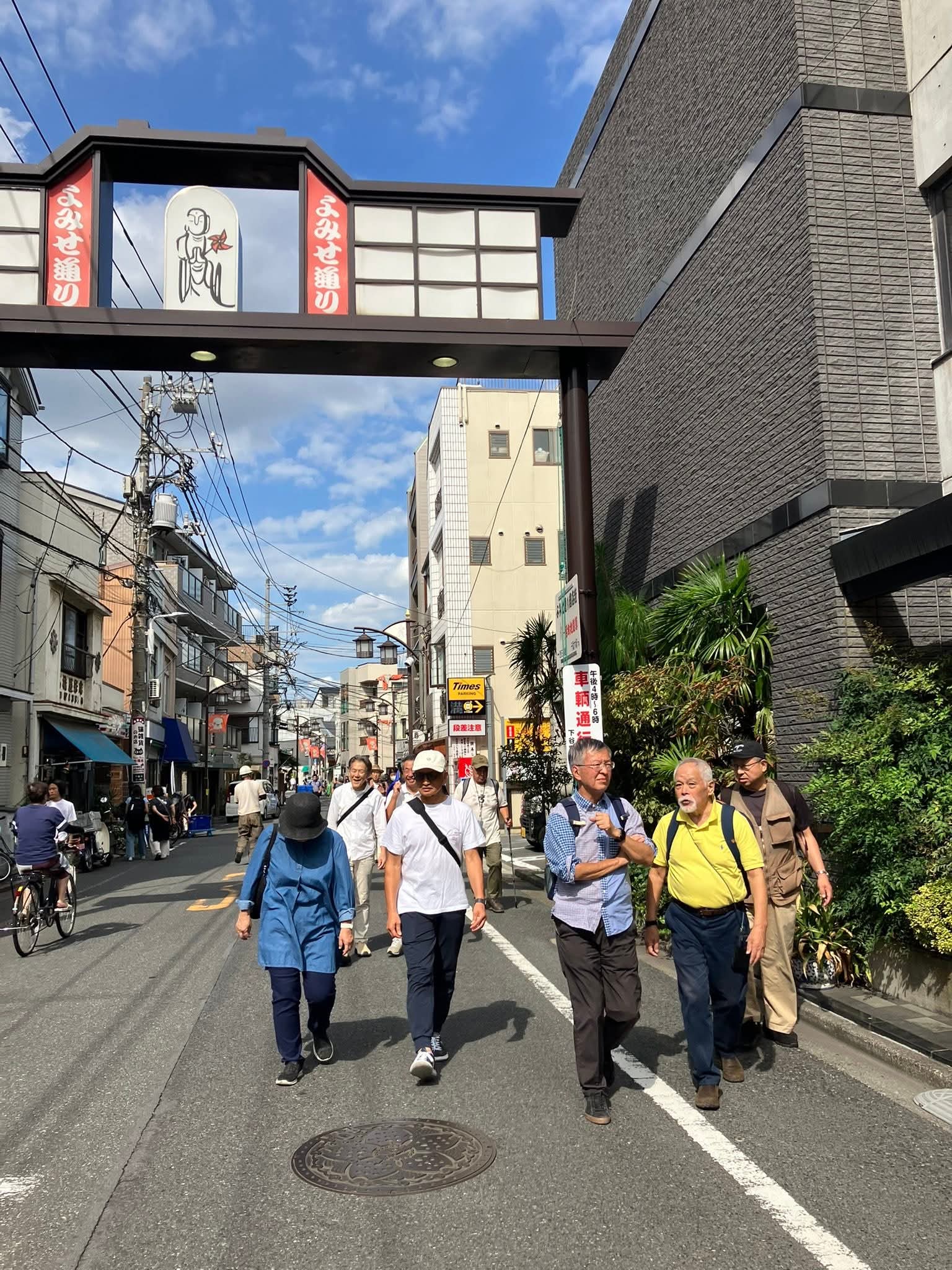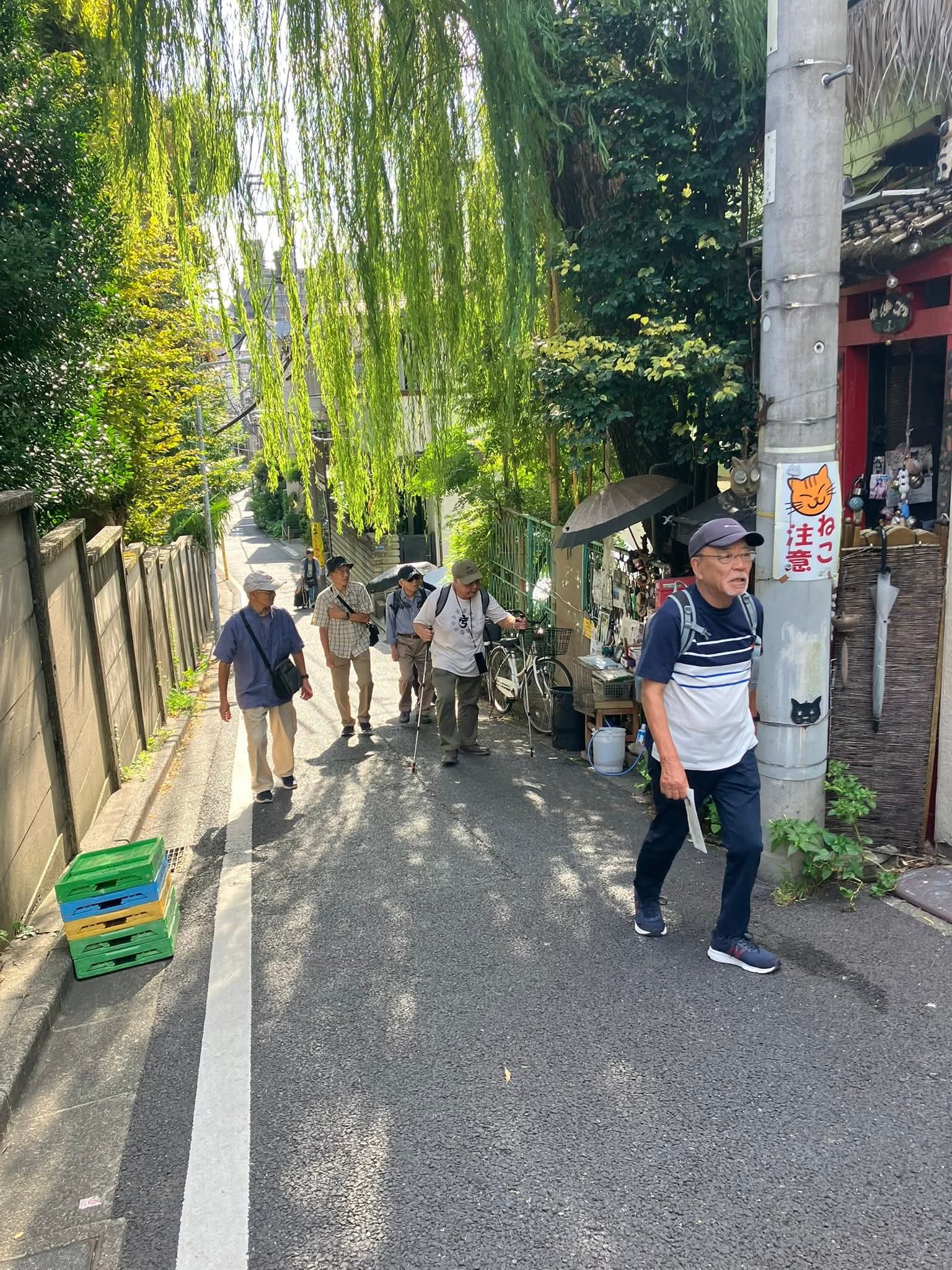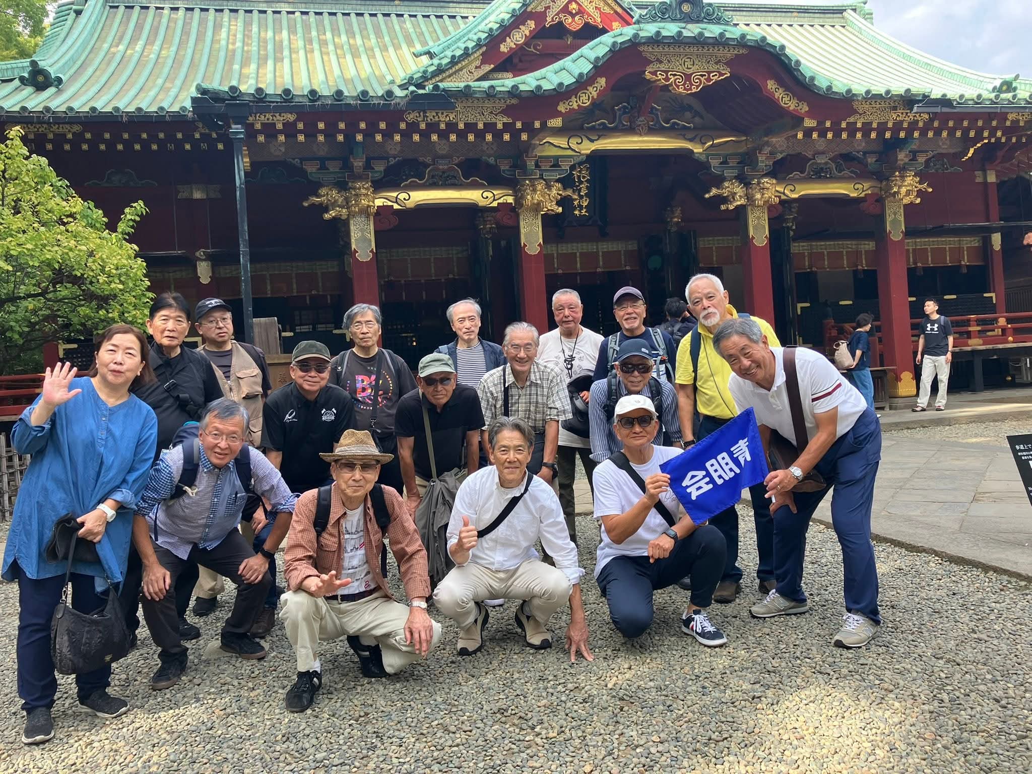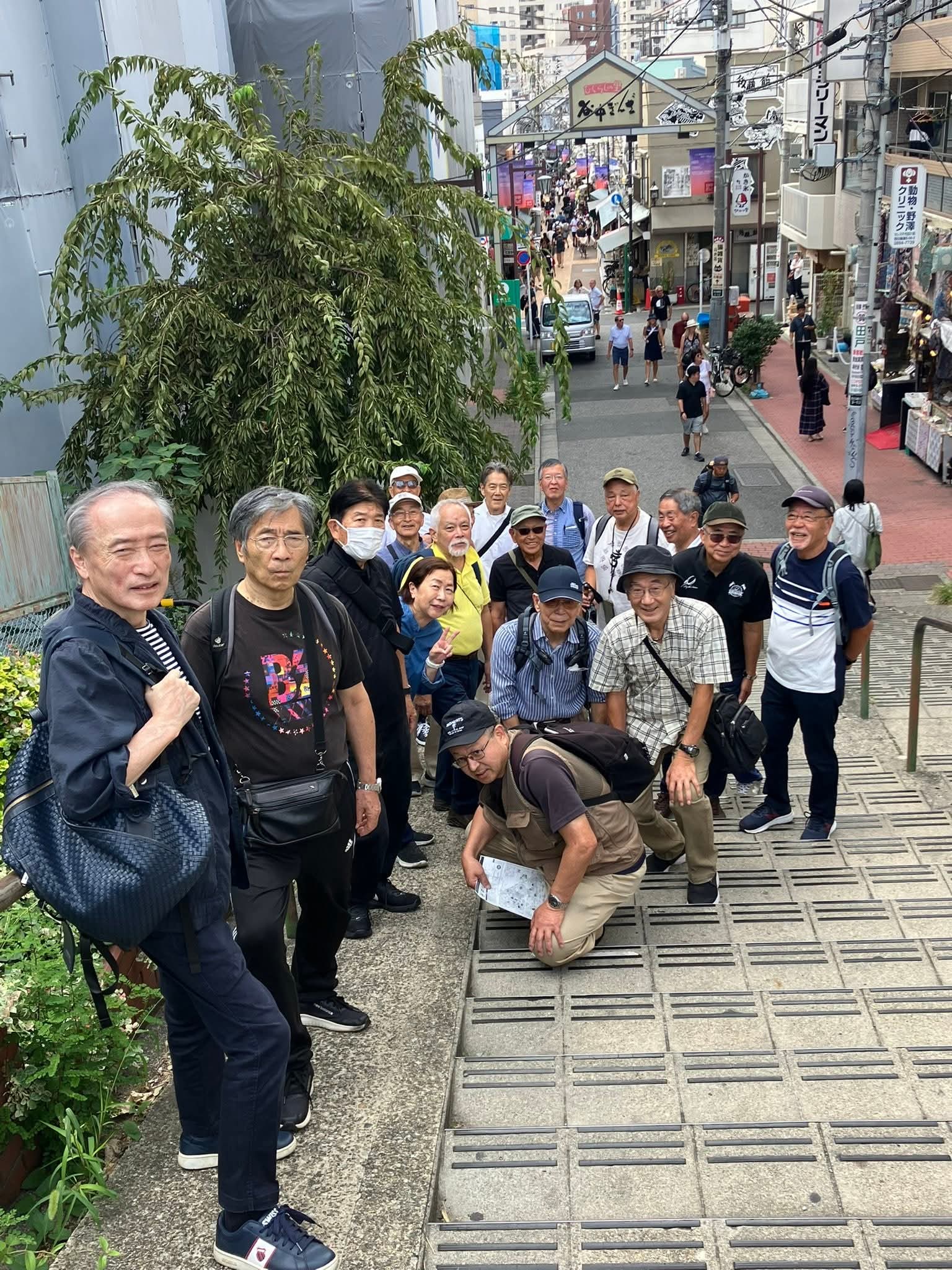 昨年の谷根千のイベントは大雨で大幅短縮で中途半端に終了してしまいました。今年は再度開催ですが、9月はまだまだ気温が30度を超える日もあり、前年の9月の神宮外苑イベントでは熱中症で途中リタイアの方もいました。今年はなんとか気温も天気も絶好のウォーキング日和となり、19名の参加でした。女性会員の参加もあり、お疲れ生も上野の大山で13名ご参加いただきました。