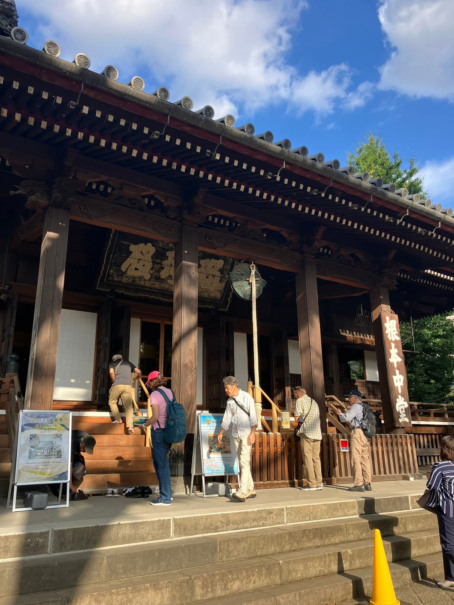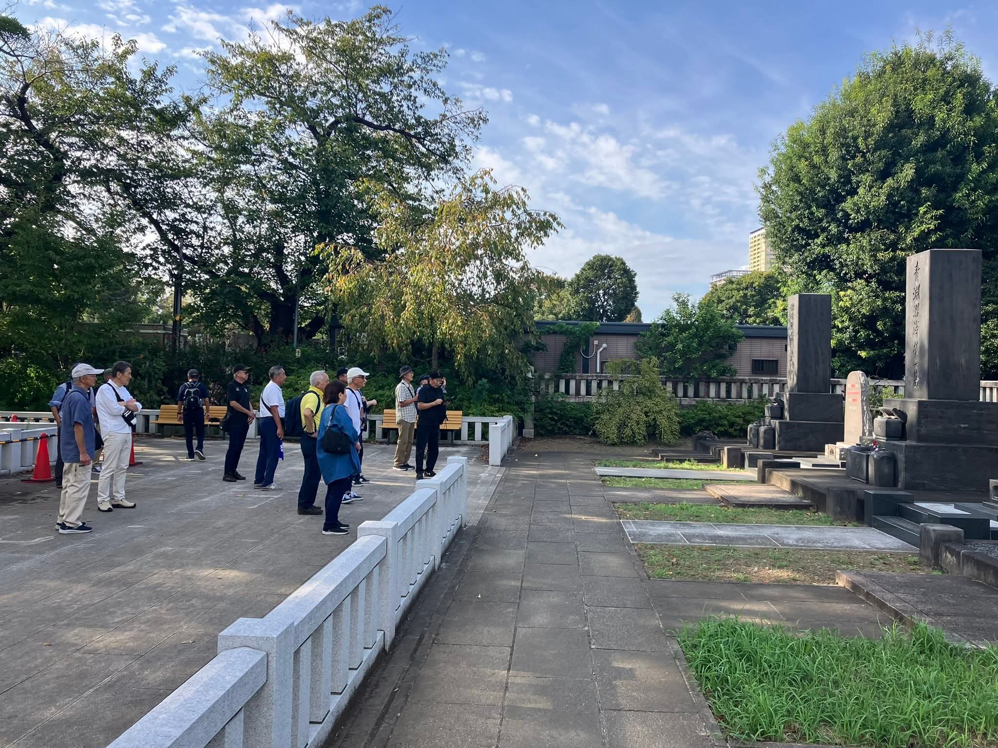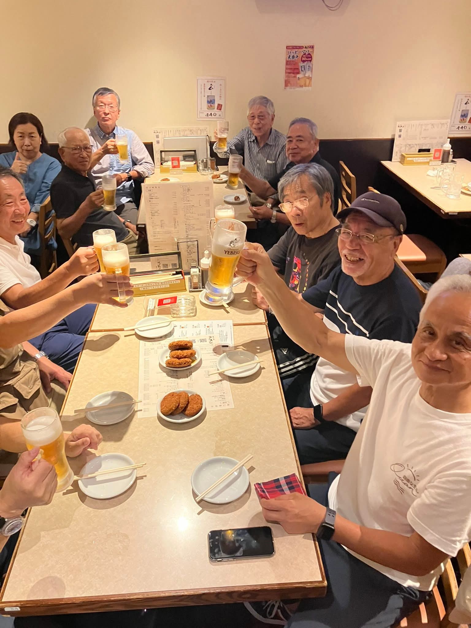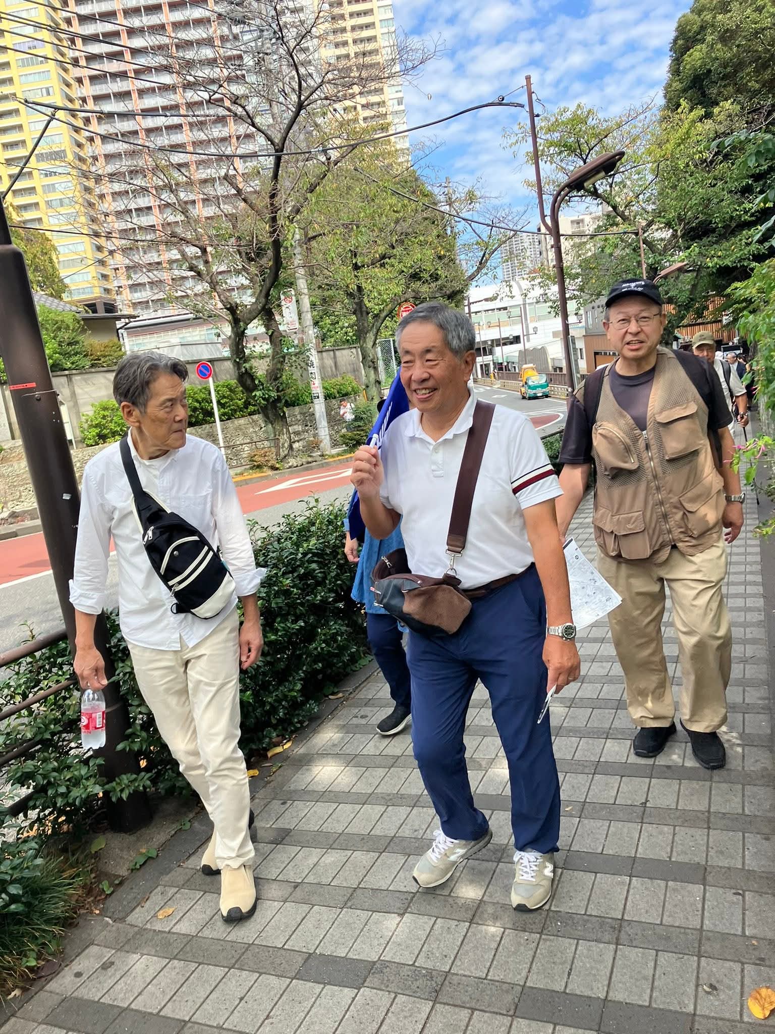 昨年の谷根千のイベントは大雨で大幅短縮で中途半端に終了してしまいました。今年は再度開催ですが、9月はまだまだ気温が30度を超える日もあり、前年の9月の神宮外苑イベントでは熱中症で途中リタイアの方もいました。今年はなんとか気温も天気も絶好のウォーキング日和となり、19名の参加でした。女性会員の参加もあり、お疲れ生も上野の大山で13名ご参加いただきました。