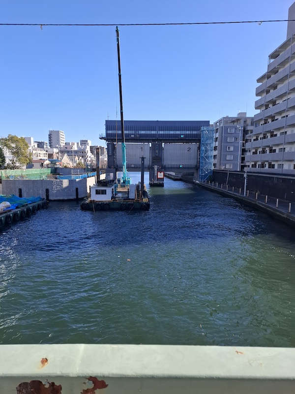 隅田川の支流小名木川の水門を見ながら万年橋を渡り、布袋尊の深川稲荷神社に行きました。
